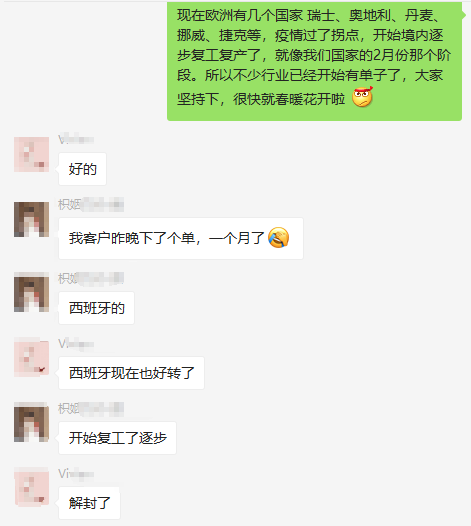 “外贸寒冬”就快要过去了,“春天”即将到来。欧洲国家逐步境内解封,外贸迎来春暖花开。朋友圈有人晒出了接单的好消息!