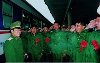 自一九二七年,中国共产党有了一支自己的军队以来,有多少中国青年,胸前佩带着大红花走进军营。这支队伍中的军人、经历过二万五千里长征的考验,经历过爬雪山、过草地、吃草根、啃树皮的磨难,经历过八年欲血的抗战!经历过四年残酷的内战。“一身报国有万死,双鬓向人无再青。”为了解放自己的人民。为了保卫自己的国家,中国军人流鲜血、洒热汗,牺牲自己宝贵的生命而无怨无悔。