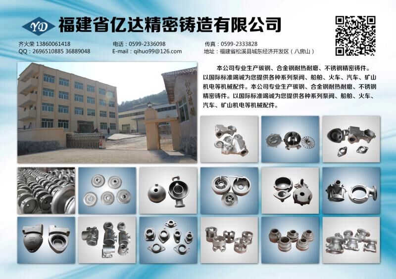 Main Products:不锈钢泵精密铸件,阀精密铸件,汽车配件精密铸件